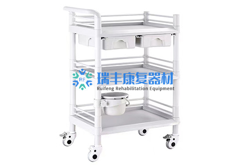 ABS工程塑料是不透明的,外观呈浅象牙色、无毒、无味,兼有韧、硬、刚的特性,有极好的冲击强度,尺寸稳定性好、电性能、耐磨性、抗化学药品性、染色性较好。亚光效果,不反光,减少光污染。适用于医疗器械,护理设备。可分类放置杂物,医用工具、药品、脚轮为灰胶轮,对角刹车。